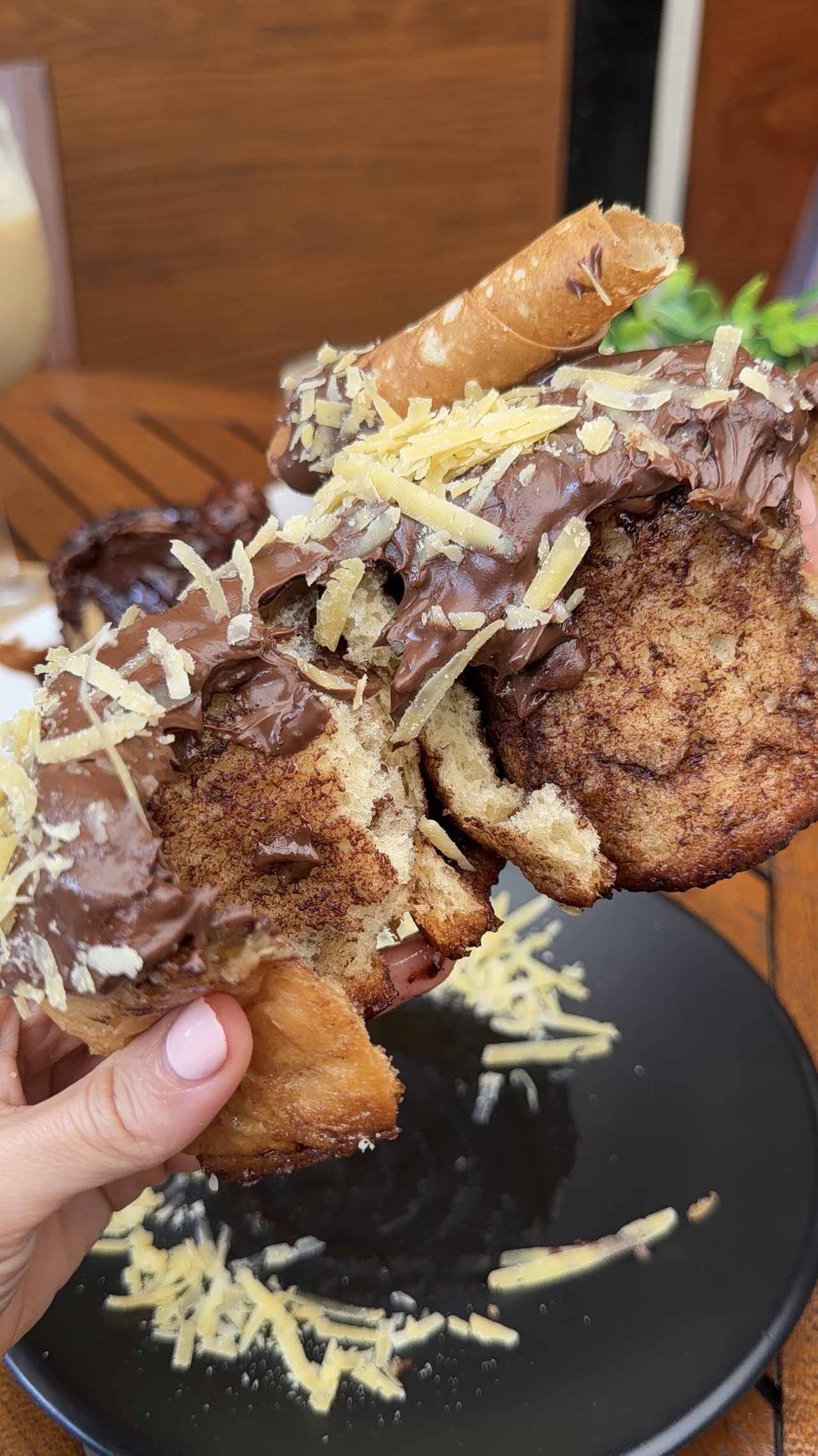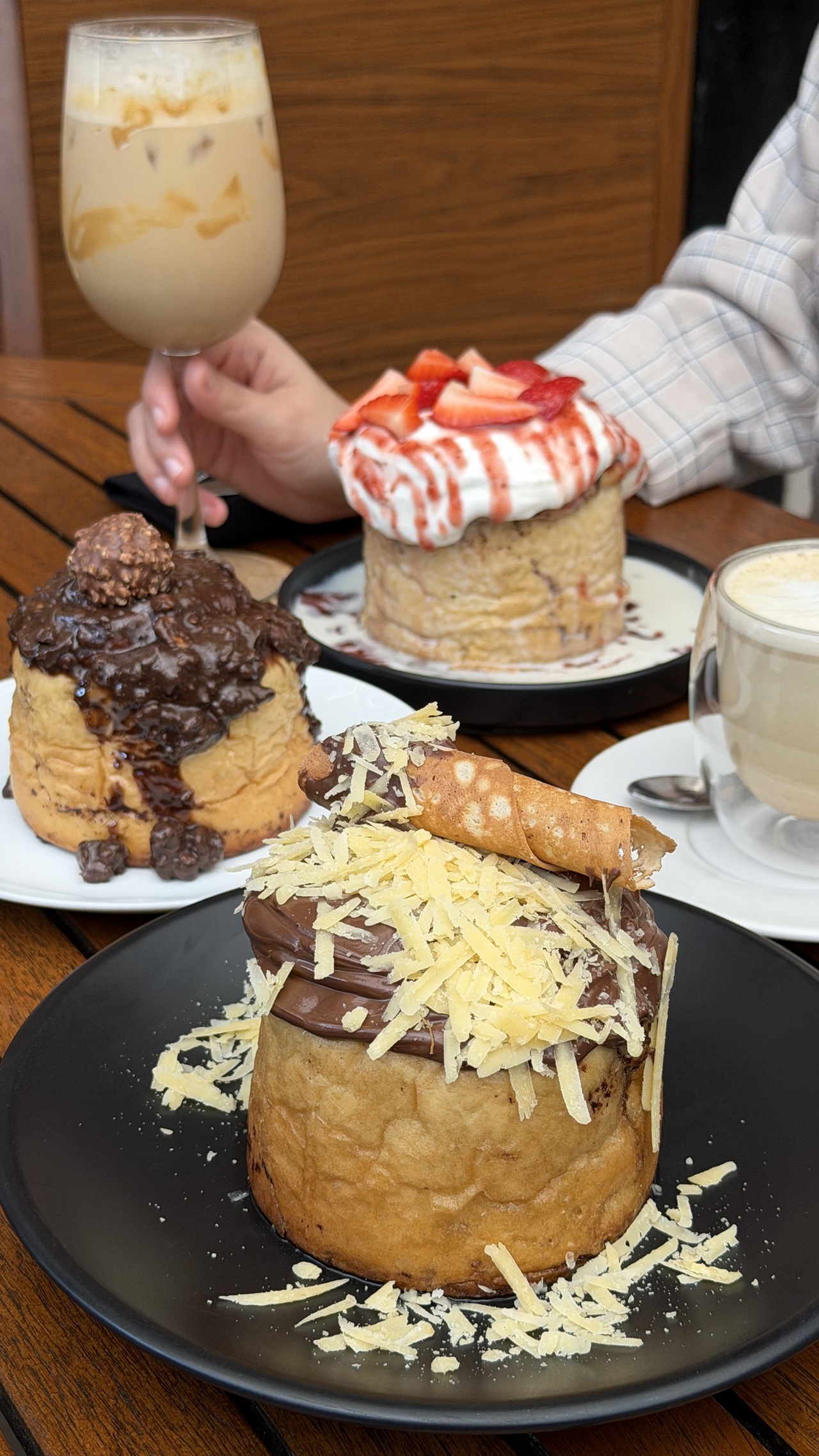 Cinnamon roll (marquesita, fresas con crema y ferrero)